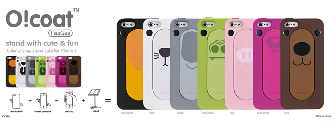 Ozaki O!coat FaaGaa 是款充滿造型、樂趣、搞怪於ㄧ身的保護殼,按壓保護殼背面,搞怪吐出舌頭後,就變身成為保護套的支撐架。